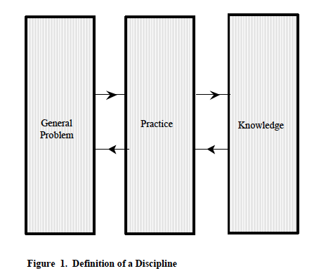 Consideration of different disciplines suggests that practice is also a necessary characteristic of a discipline. Further, a discipline’s knowledge is used by its practices to solve a general (discipline) problem. For example, the discipline of science includes the scientific practice addressing the general (scientific) problem of explanation and prediction. The discipline of engineering includes the engineering practice addressing the general (engineering) problem of design. The discipline of medicine includes the medical practice addressing the general (medical) problem of supporting health. Practice, therefore, and the general (discipline) problem which it uses knowledge to solve, are also necessary characteristics of a discipline.