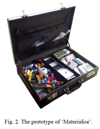we developed ‘Materialise’, a building set for hybrid crafting that consists of physical building blocks which can be used for crafting physical constructions, but also allows for the inclusion of digital media.