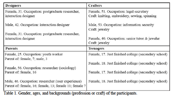 Other studies have looked at specific craft practices to illustrate how the design of technological products may benefit from taking into account these forms of making. Meastri and Wakkery [28], for example, look at the repair and reuse of objects in the home as a form of everyday creativity and ‘everyday design’ and argue for the employment of a framework of resourcefulness, adaptation, and quality to overcome the barriers of repairing and adapting digital technologies.