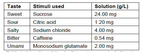 Introduction I first met Marianna Obrist, following a seminar, which she presented at UCLIC in May, 2014. The seminar was entitled: Multi-Sensory Experiences: How we Experience the World and How we design Technology. I much enjoyed Marianna’s seminar, which together with a chat afterwards revealed common interests in understanding human experience/behaviour and its relationship to design. My PhD thesis involved multi-dimensional vision and audition. However, research on the multi-sensory experiences of touch, taste and smell was new to me. Marianna and I subsequently exchanged e-mails about the research and in particular concerning the way forward and the issues raised. I offered to review two papers reporting this research for the HCI Engineering website, provided Marianna made a specific request. Here it is: ‘John Hi! I am requesting a review for the following two papers: Temporal, Affective, and Embodied Characteristics of Taste Experience: a Framework for Design and Opportunities for Odor: Experiences with Smell and Implications for Technology, both published in CHI 2014. I am particularly interested in the impact of the research on technology design, as it was not only a question, raised following my UCLIC seminar; but also on other occasions. However, I still believe that we need to establish the foundation and vocabulary for the senses of touch, taste and smell. I would like, then, for the review to include both the understanding of the experience of these senses and the application of that knowledge to the design of technology involving HCI. Both the future direction of the research should be considered, including the issues raised. I understand that the IPR of the papers would remain unaffected by the review. Further, that I am in no way obligated to follow any of the suggestions made in the review, although I would certainly read and reflect on them in a way consistent with this request..’ Marianna Obrist. betina.piqueras-fiszman@psy.ox.ac.uk | carlos.velasco@psy.ox.ac.uk | charles.spence@psy.ox.ac.uk 1Culture Lab, School of Computing Science Newcastle University, UK 2School of Engineering and Informatics University of Sussex, UK 3Deptartment of Computer Science, University of Bristol, UK 4Department of Experimental Psychology, University of Oxford, UK We present rich descriptions of taste experience through an analysis of the diachronic and synchronic experiences of each of the five basic taste qualities: sweet, sour, salt, bitter, and umami. Our findings, based on a combination of user experience evaluation techniques highlight three main themes: temporality, affective reactions, and embodiment. We present the taste characteristics as a framework for design and discuss each taste in order to elucidate the design qualities of individual taste experiences. These findings add a semantic understanding of taste experiences, their temporality enhanced through descriptions of the affective reactions and embodiment that the five basic tastes elicit. These findings are discussed on the basis of established psychological and behavioral phenomena, highlighting the potential for taste-enhanced design. Author Keywords Taste; user experience; taste experiences; sensory research; explicitation interview technique; sensual evaluation tool. ACM Classification Keywords H.5.2 Information interfaces and presentation (e.g., HCI): Miscellaneous. Experts in taste perception agree on at least five basic tastesTemporal, Affective, and Embodied Characteristics of