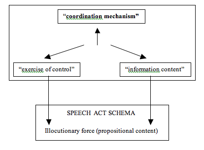 What we are looking for then is a means of amalgamating the analysis of Shaw & Fox, which exposes the elements of a coordination mechanism but minus the assumption of mutual knowledge. There is a convenient concept associated with linguistic behaviour which has striking similarities in structure and in function, we shall argue, to the coordination mechanism as exposed by Shaw & Fox [14]: that of the Speech Act (Austin, [16]; Searle, [17]).
